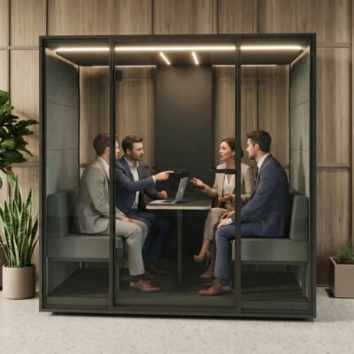 Konzentriertes Arbeiten – setzen Sie auf eine Akustikbox. Akustikkabinen für Büro Open Space ist heute ein Muss in jedem modernen Unternehmen, das nicht nur für Arbeitseffizienz, sondern auch Komfort seiner Mitarbeiter sorgt. Akustikkabinen eignen sich perfekt dafür und bieten ideale Arbeitsplätze für konzentriertes Arbeiten, schallisolierte Treffpunkte für Gruppen unterschiedlicher Größe und sogar einen gemütlichen Entspannungsbereich.